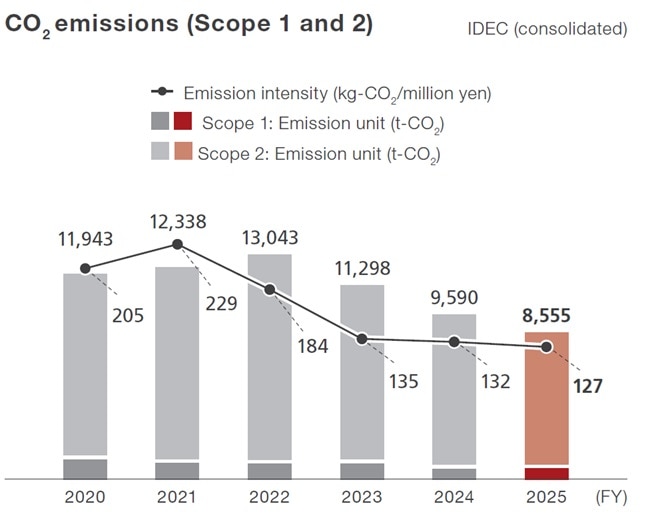 In terms of CO2 emissions for FY2025, total Scope 1 and Scope 2 emissions decreased in comparison with FY2024. We have been successful in continuously reducing emissions since FY2023.